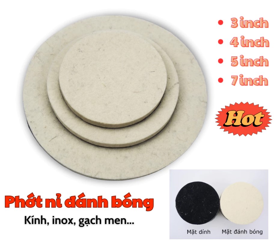 Miếng phớt pad nỉ đánh bóng là phụ kiện không thể thiếu khi vệ sinh – phục hồi bề mặt kính, inox hoặc thân xe ô tô. Sản phẩm được thiết kế để gắn vào máy khoan, máy mài hoặc máy đánh bóng, mang lại hiệu quả xử lý vết xước vượt trội và độ bóng sáng như mới.