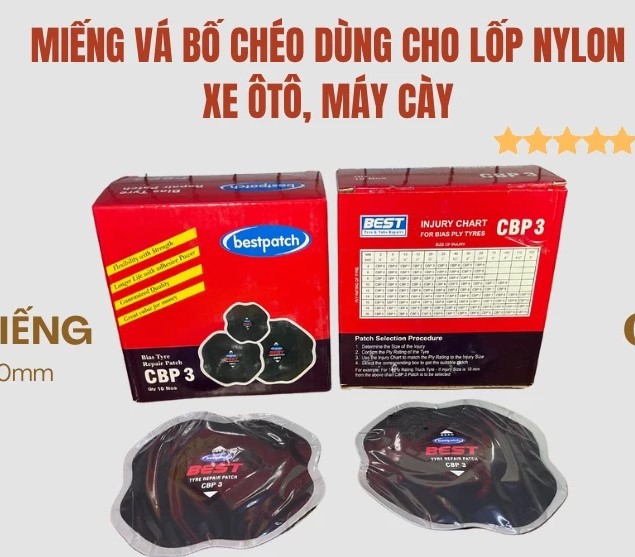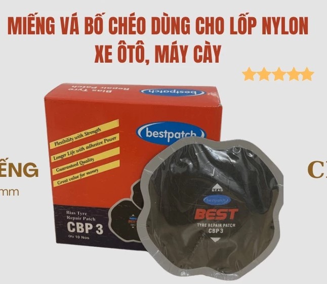 Miếng vá CBP3HD là loại miếng vá chuyên dụng dành cho các phương tiện tải trọng lớn như xe tải, máy cày, xe công trình và ô tô. Sản phẩm được thiết kế theo dạng bố chéo (cross-ply) giúp tạo độ chắc chắn, phân bổ lực đều và nâng cao độ bền cho khu vực được vá.
