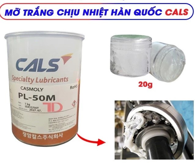 Mỡ trắng chịu nhiệt CALS Hàn Quốc là giải pháp bôi trơn đáng tin cậy, giúp máy móc vận hành ổn định, giảm mài mòn, bám dính tốt và sử dụng lâu dài mà không lo chảy nhão, đặc biệt phù hợp cho các ứng dụng cần độ bền và khả năng chịu nhiệt cao.