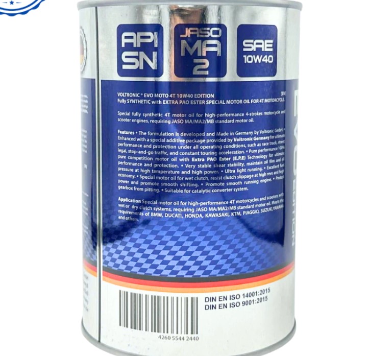 Nhớt tổng hợp Voltronic Evo Moto 4T Edition 10W40 là giải pháp hoàn hảo cho xe số và xe côn tay, mang đến hiệu suất tối ưu, bảo vệ động cơ toàn diện, giảm hao mòn, tăng tuổi thọ và tiết kiệm nhiên liệu. Sản phẩm dễ sử dụng, đa năng và đáng tin cậy, kèm theo 30ml phụ gia xăng tăng hiệu quả vận hành, là lựa chọn lý tưởng cho mọi người dùng xe máy hiện nay.