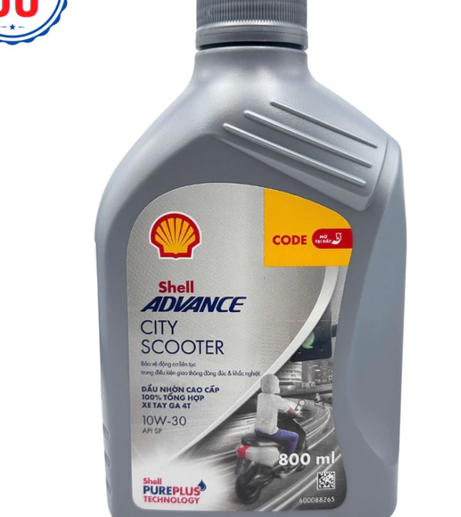 Nhớt xe tay ga Shell Advance City Scooter API SP 10W30 – 10W40 là dòng dầu nhớt cao cấp tổng hợp toàn phần, được Shell phát triển dành riêng cho động cơ xe tay ga hiện đại. Sản phẩm được sản xuất tại Thái Lan, đáp ứng các tiêu chuẩn kỹ thuật khắt khe, phù hợp với điều kiện vận hành thường xuyên trong đô thị và môi trường khí hậu nóng ẩm.