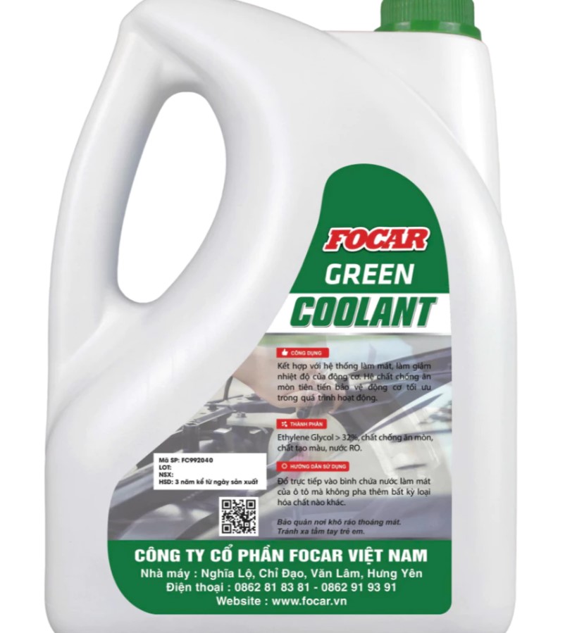FOCAR Green Coolant 4L là dung dịch làm mát động cơ ô tô chuyên dụng, được phát triển dựa trên công nghệ axit hữu cơ tiên tiến (OAT – Organic Acid Technology) kết hợp với nguồn nguyên liệu chất lượng cao nhập khẩu từ Đức. Sản phẩm được thiết kế nhằm đáp ứng nhu cầu vận hành của động cơ trong điều kiện khí hậu nóng ẩm, nhiệt độ cao và cường độ sử dụng liên tục như tại Việt Nam.