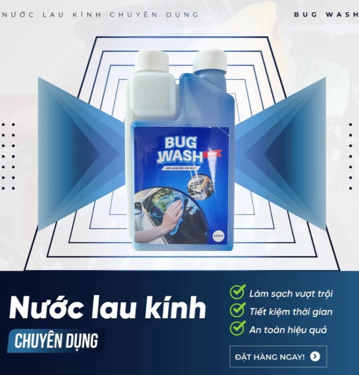 Nước rửa kính BUG WASH là dung dịch chuyên dụng đến từ Mỹ, được thiết kế đặc biệt giúp làm sạch triệt để kính ô tô, loại bỏ mọi bụi bẩn, dầu mỡ, cặn canxi và vết bẩn cứng đầu mà không làm hại bề mặt kính.