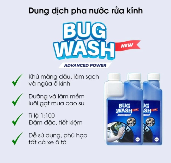 Tên sản phẩm: Nước pha rửa kính chuyên dụng đậm đặc BUG WASH