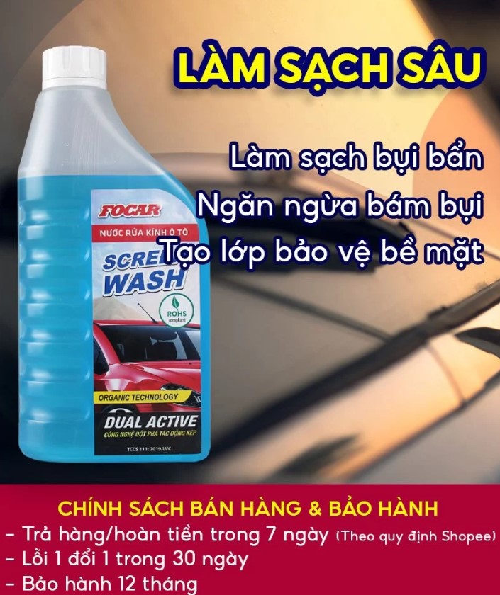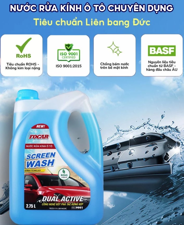 Nước rửa kính ô tô FOCAR là dung dịch chuyên dụng giúp làm sạch sâu, loại bỏ hoàn toàn bụi bẩn, dầu mỡ và cặn bám trên bề mặt kính chắn gió. Sản phẩm được nhiều chủ xe tin dùng nhờ khả năng làm sạch nhanh, chống bám cặn, chống mờ kính và bảo vệ cao su cần gạt, đảm bảo tầm nhìn luôn rõ ràng và an toàn khi lái xe trong mọi điều kiện thời tiết.