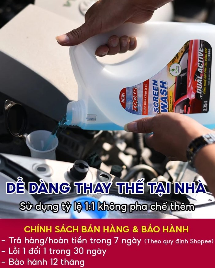 Đổ trực tiếp dung dịch vào bình chứa nước rửa kính của xe.