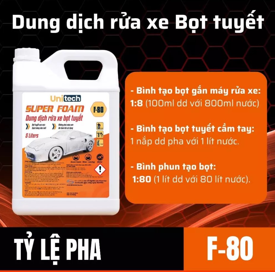 - Bình bọt tuyết cầm tay: Pha tỉ lệ 1:7 – 1:10 tùy độ bẩn của xe.