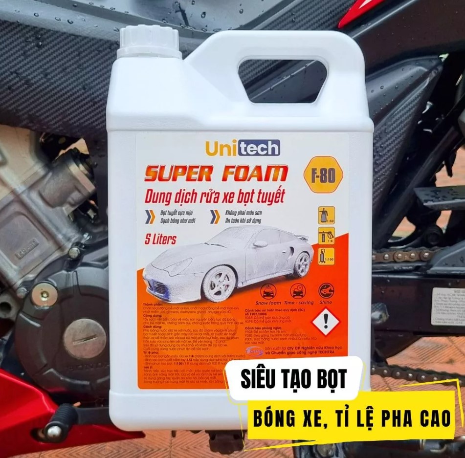 Nước rửa xe bọt tuyết SUPER FOAM là dung dịch chuyên dụng cho cả ô tô và xe máy, giúp làm sạch sâu bụi bẩn, dầu mỡ, bùn đất bám trên bề mặt sơn và kim loại. Với công nghệ tạo bọt tuyết tiên tiến, sản phẩm tạo lớp bọt dày, bám đều khắp bề mặt xe giúp quá trình rửa sạch dễ dàng, hạn chế trầy xước và mang lại hiệu ứng bóng sáng như mới rửa tiệm.