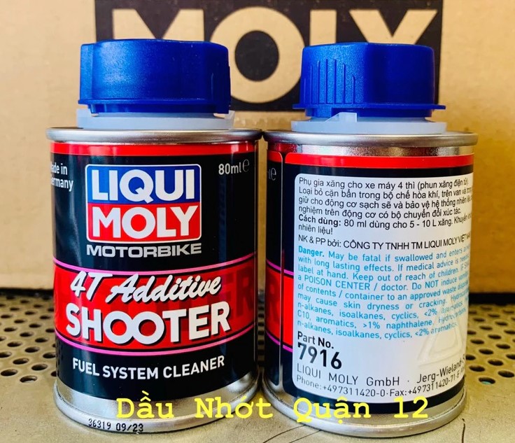 Phụ gia vệ sinh buồng đốt Liqui Moly 4T Additive Shooter là dòng sản phẩm cao cấp đến từ tập đoàn dầu nhớt nổi tiếng Liqui Moly – Đức, thương hiệu được tin dùng rộng rãi trên toàn thế giới. Đây là dung dịch chuyên dụng giúp làm sạch toàn bộ hệ thống nhiên liệu của xe máy, từ bình xăng đến kim phun, buồng đốt, bugi và khu vực đầu piston.