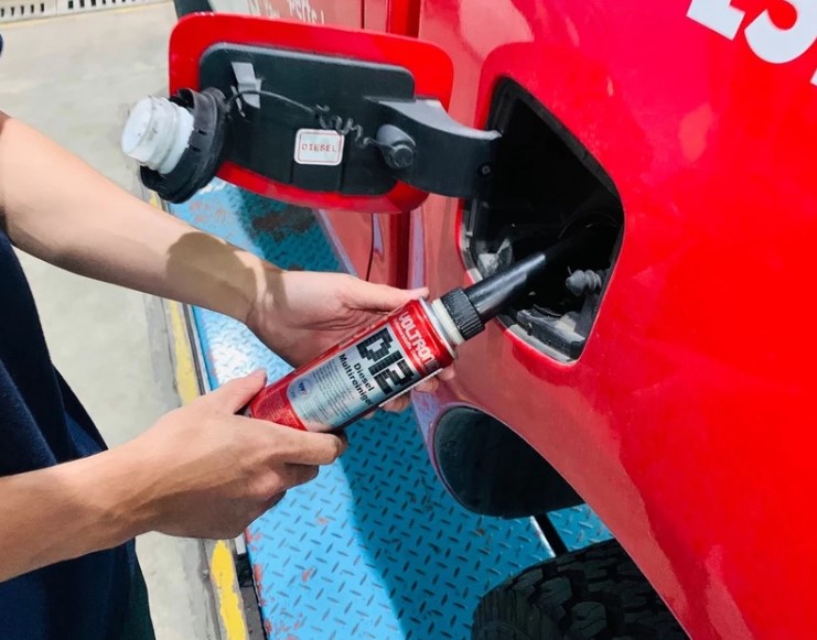 Đổ trực tiếp toàn bộ chai 300ml vào bình chứa nhiên liệu diesel.