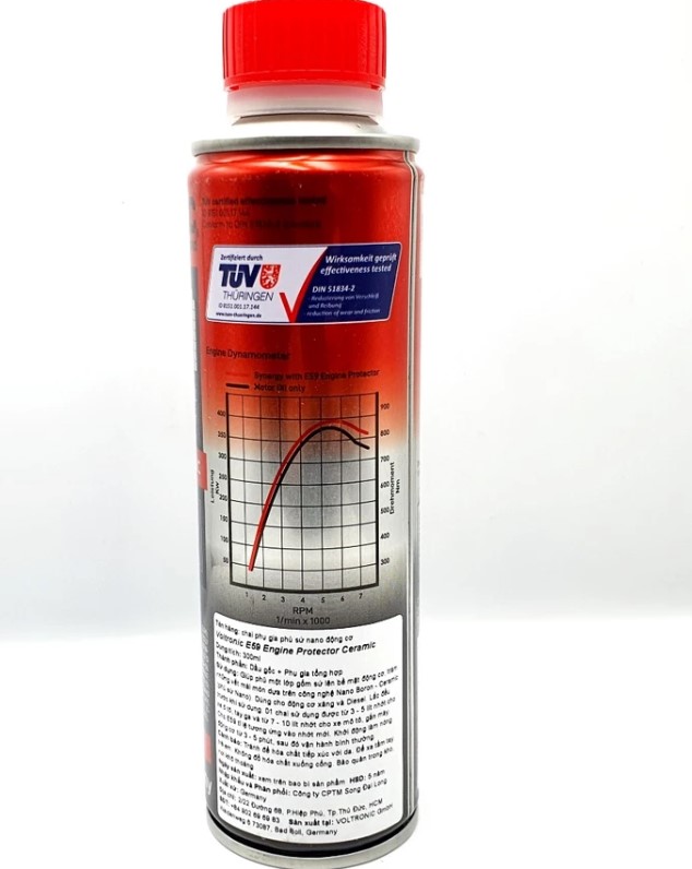 Voltronic E59 Engine Protector là dòng phụ gia nhớt cao cấp được nghiên cứu và sản xuất tại Đức, ứng dụng công nghệ Boron–Ceramic Nano hiện đại bậc nhất trong ngành dầu nhờn. Sản phẩm được thiết kế nhằm nâng cấp khả năng bôi trơn, giảm ma sát mạnh mẽ, đồng thời tạo ra một lớp màng gốm–nano bảo vệ tuyệt đối cho toàn bộ bề mặt kim loại bên trong động cơ.