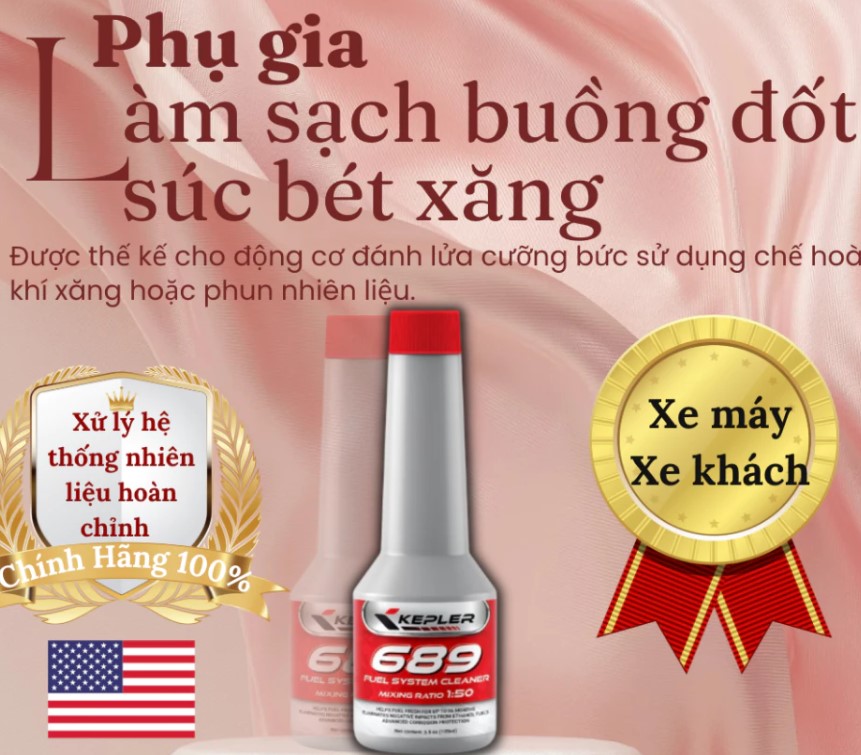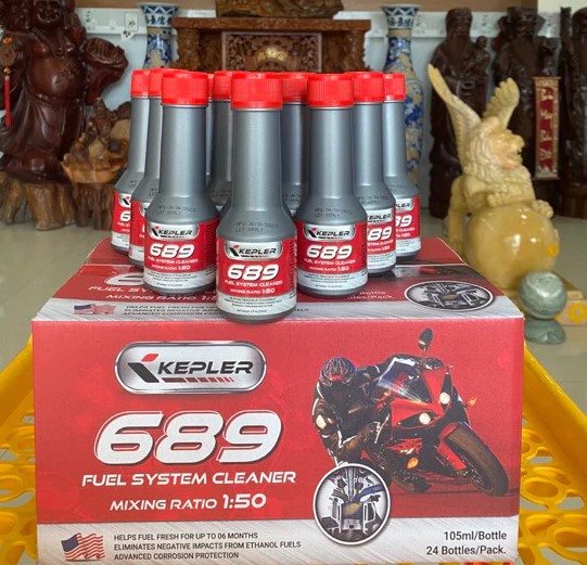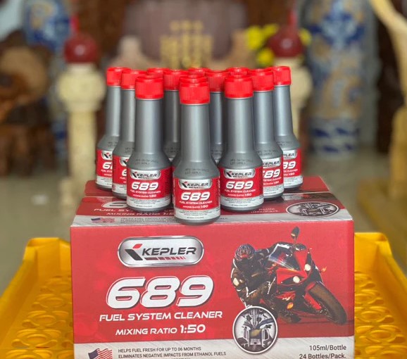 Phụ gia KEPLER 689 Fuel System Cleaner là giải pháp tối ưu giúp làm sạch toàn bộ hệ thống nhiên liệu cho xe máy và ô tô. Sản phẩm được sản xuất theo tiêu chuẩn công nghệ cao, hỗ trợ đánh tan cặn bẩn tích tụ lâu ngày trong kim phun, bộ chế hòa khí và khu vực van nạp – những vị trí thường bị đóng muội than gây suy giảm hiệu suất động cơ. Việc sử dụng phụ gia định kỳ giúp xe vận hành ổn định, tăng độ bốc và hạn chế tình trạng hao xăng theo thời gian.
