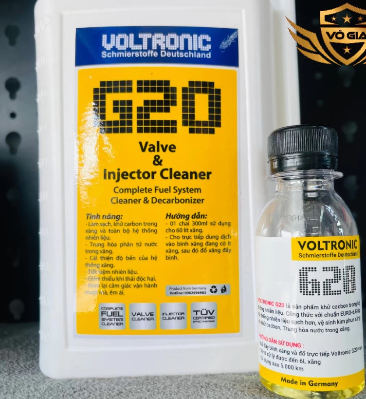 Voltronic G20 là phụ gia xăng cao cấp đến từ Đức, được thiết kế chuyên biệt để vệ sinh toàn diện hệ thống nhiên liệu trên xe máy. Sản phẩm không chỉ làm sạch kim phun và buồng đốt mà còn có khả năng khử carbon cứng đầu, trung hòa nước trong xăng và tối ưu hiệu suất động cơ theo chuẩn quốc tế EURO-6.
