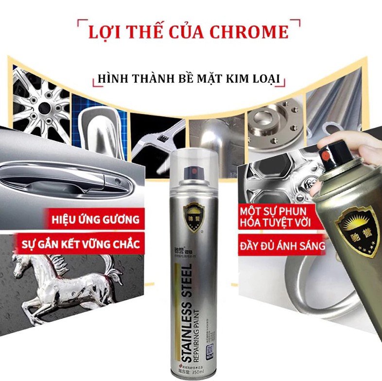 Tên sản phẩm: Sơn mạ bạc Crom – Sơn xịt mạ Chrome màu Inox sáng bóng