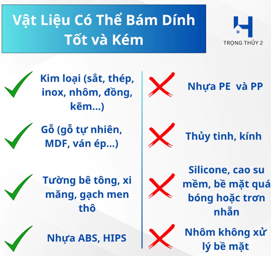 - Độ bám dính vượt trội trên nhiều chất liệu khác nhau như: kim loại, gỗ, nhựa ABS, bê tông, sành – sứ, gốm, vật liệu tổng hợp…