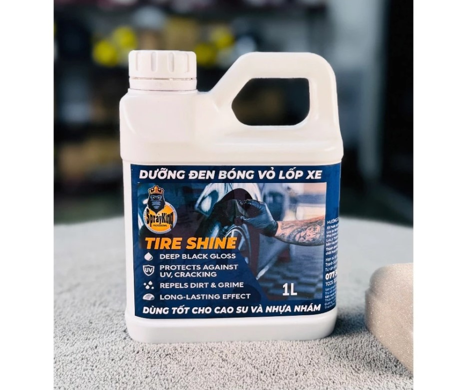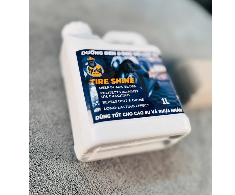 SprayKing Tire Shine là dung dịch chuyên dụng giúp phục hồi và làm mới bề mặt lốp xe, mang lại lớp bóng đen sang trọng và duy trì độ bền trong thời gian dài. Sản phẩm đồng thời hoạt động như một lớp dưỡng nhựa nhám, phù hợp cho phần nhựa ngoại thất xe bị phai màu, mất độ bóng.