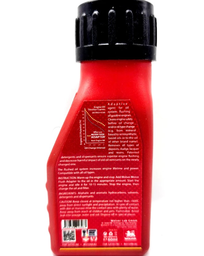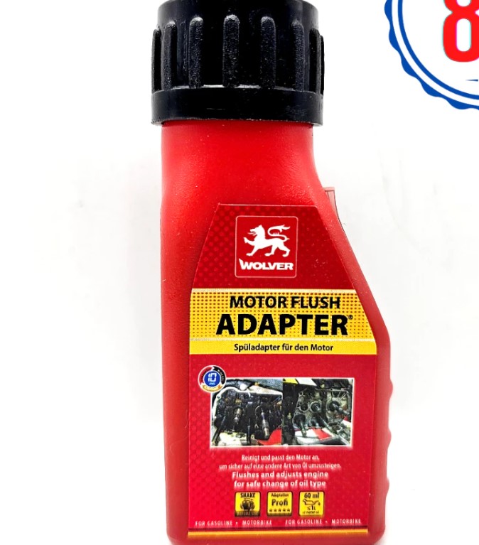 Wolver Moto Flush Adapter 60ML là dung dịch súc rửa động cơ cao cấp được sản xuất trực tiếp tại Đức, ứng dụng hệ chất tẩy rửa độc quyền đã được cấp bằng sáng chế của Wolver. Sản phẩm chuyên dùng để làm sạch dầu nhớt cũ, cặn bùn, mảng bám carbon và các tạp chất tồn đọng trong động cơ trước khi thay nhớt mới.