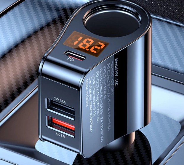 Ngoài khả năng sạc, tẩu còn được chia thêm 2 lỗ tẩu thuốc, giúp mở rộng nguồn điện mà không ảnh hưởng đến thiết bị gốc của xe. Màn hình LED hiển thị điện áp thông minh giúp người dùng dễ dàng theo dõi tình trạng nguồn điện của xe, góp phần tăng độ an toàn khi sử dụng.