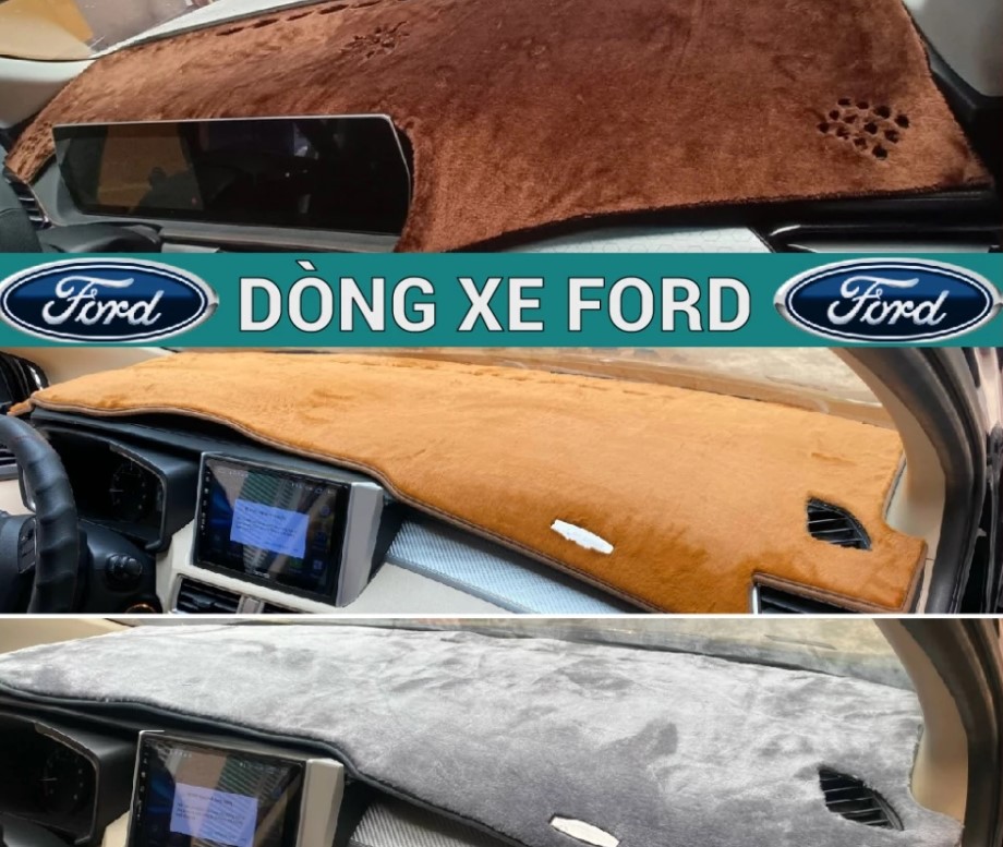 Thảm taplo nhung lông cừu dành cho các dòng xe Ford: Ecosport, Escape, Everest, Explorer, Focus, Ranger, Transit, Territory, được thiết kế chuẩn form, 3 lớp chống trượt, phù hợp từng đường nét trên taplo.