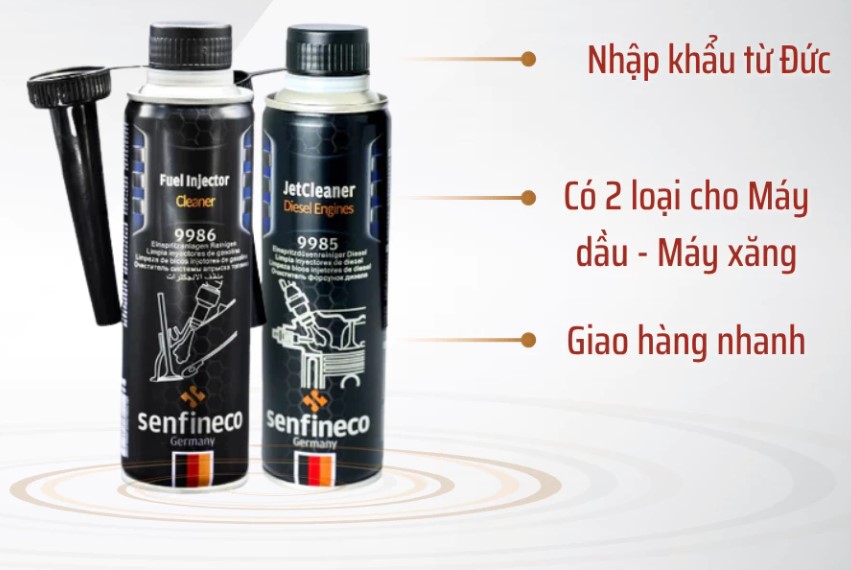 Bộ sản phẩm vệ sinh kim phun và buồng đốt Senfineco đến từ Đức là giải pháp chuyên nghiệp giúp phục hồi hiệu suất động cơ nhanh chóng mà không cần tháo rời chi tiết máy. Các dung dịch vệ sinh kim phun Senfineco với dung tích 300ml được nghiên cứu để xử lý toàn diện các vấn đề liên quan đến tắc nghẽn kim phun, muội carbon trong buồng đốt, cặn bẩn trong hệ thống dẫn nhiên liệu – những nguyên nhân hàng đầu gây hao xăng và giảm công suất động cơ.