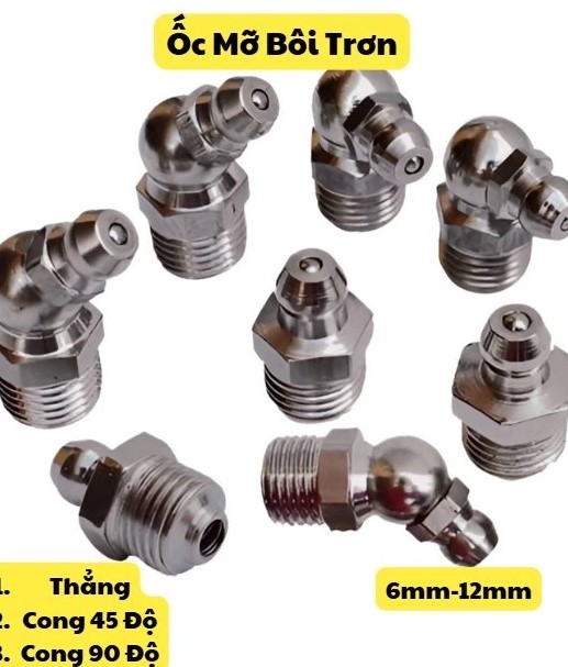 Vú mỡ (đầu bơm mỡ bôi trơn) là chi tiết cơ khí quan trọng, được lắp trực tiếp lên các bộ phận cần bôi trơn định kỳ như trục, bạc đạn, khớp nối, bản lề, càng xe, máy móc công nghiệp và nông nghiệp. Sản phẩm cho phép đưa mỡ bôi trơn vào sâu bên trong chi tiết thông qua súng bơm mỡ, giúp giảm ma sát, chống mài mòn và kéo dài tuổi thọ thiết bị.